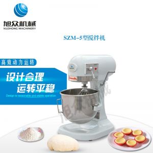 SZM-5型攪拌機(jī),可用于攪拌奶油、蛋糕液、餡料及和制面團(tuán)等操作。打蛋攪拌機(jī)等作攪拌食料、揉和面團(tuán)之用,是生產(chǎn)優(yōu)質(zhì)糕點(diǎn)的理想設(shè)備,適用于酒店、飯店、學(xué)校部門、面包屋以及食品廠家。